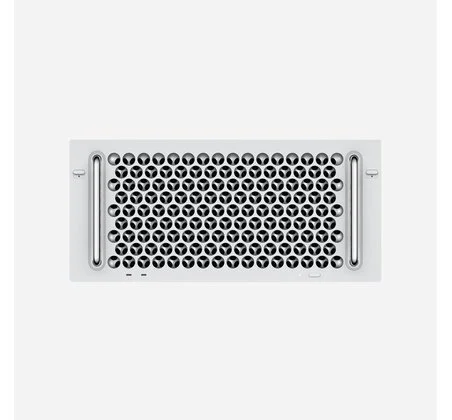 Mac Pro is also available in a rack mount — with all the same performance features and configuration options as the tower — for spaces better suited to a rack design. The rack mount features the airflow-maximizing 3D lattice and stainless steel handles on the front and tool-less stainless steel slide rails in place of feet or optional wheels.